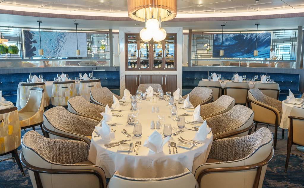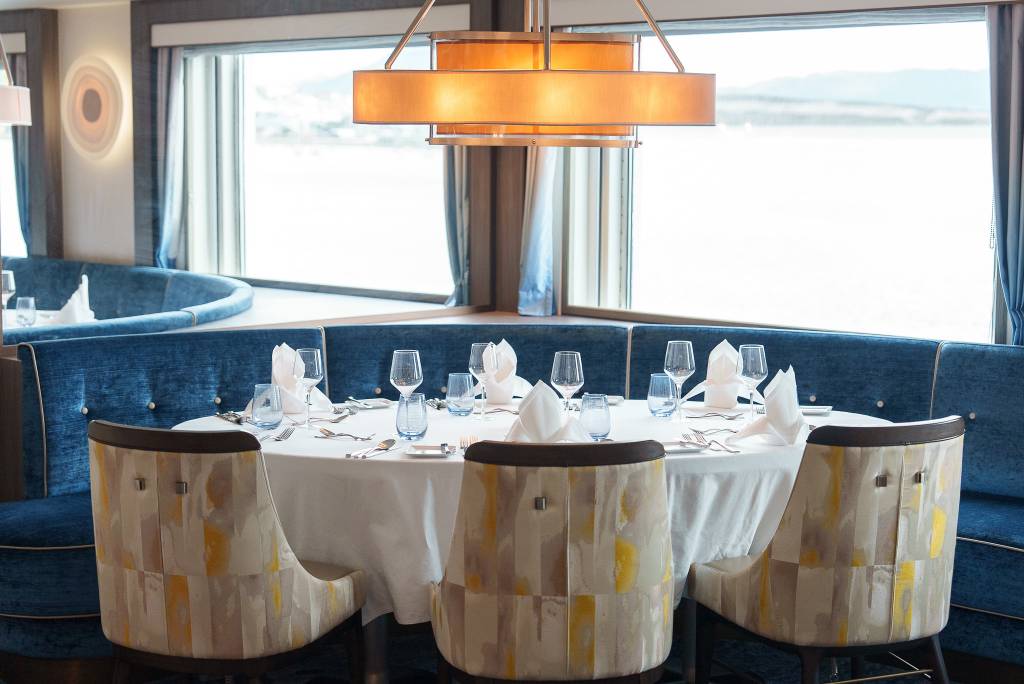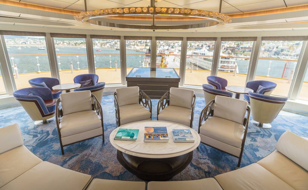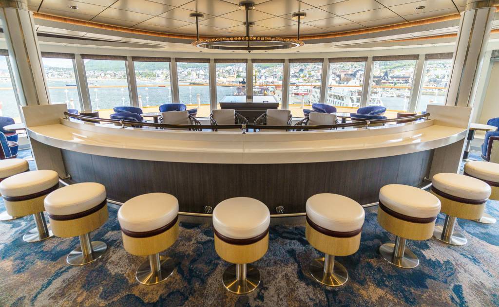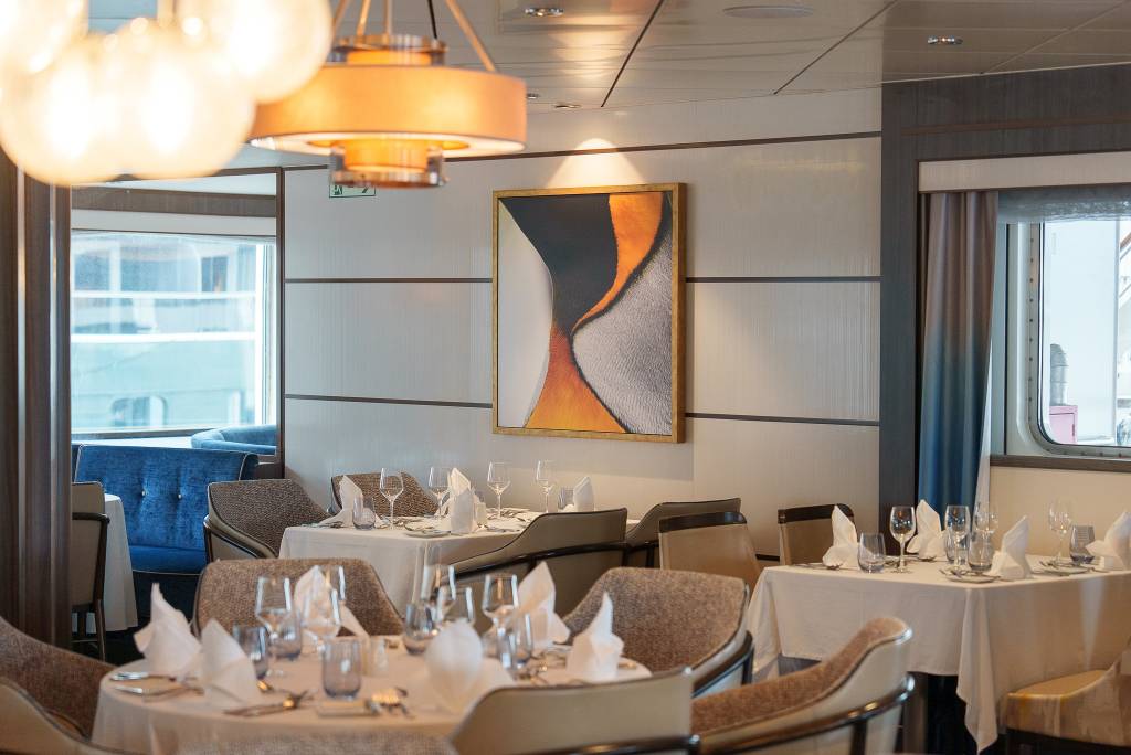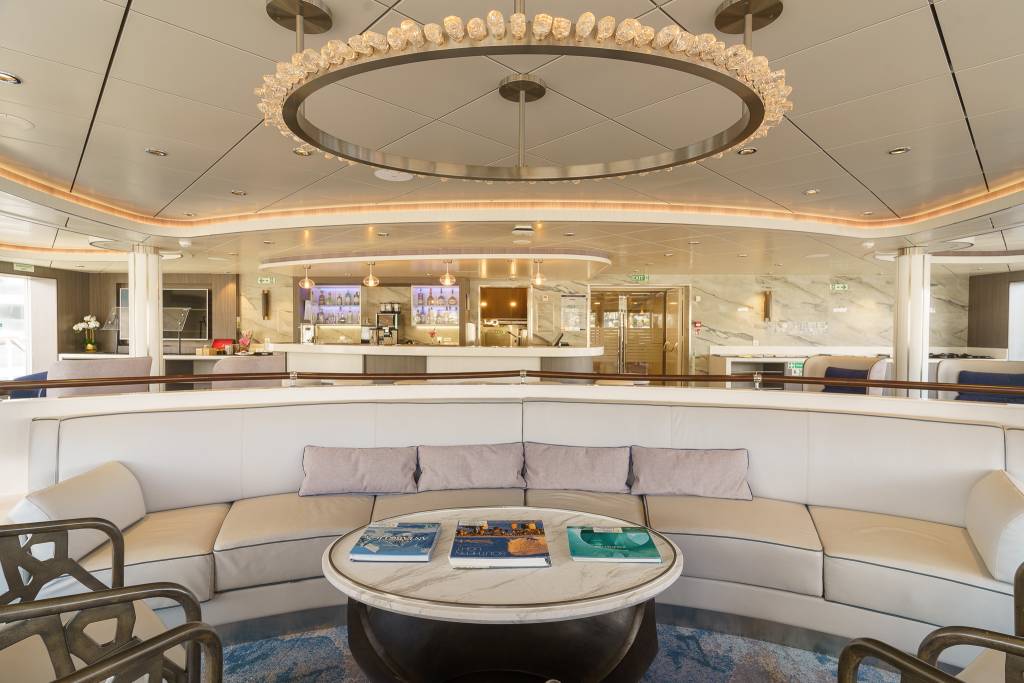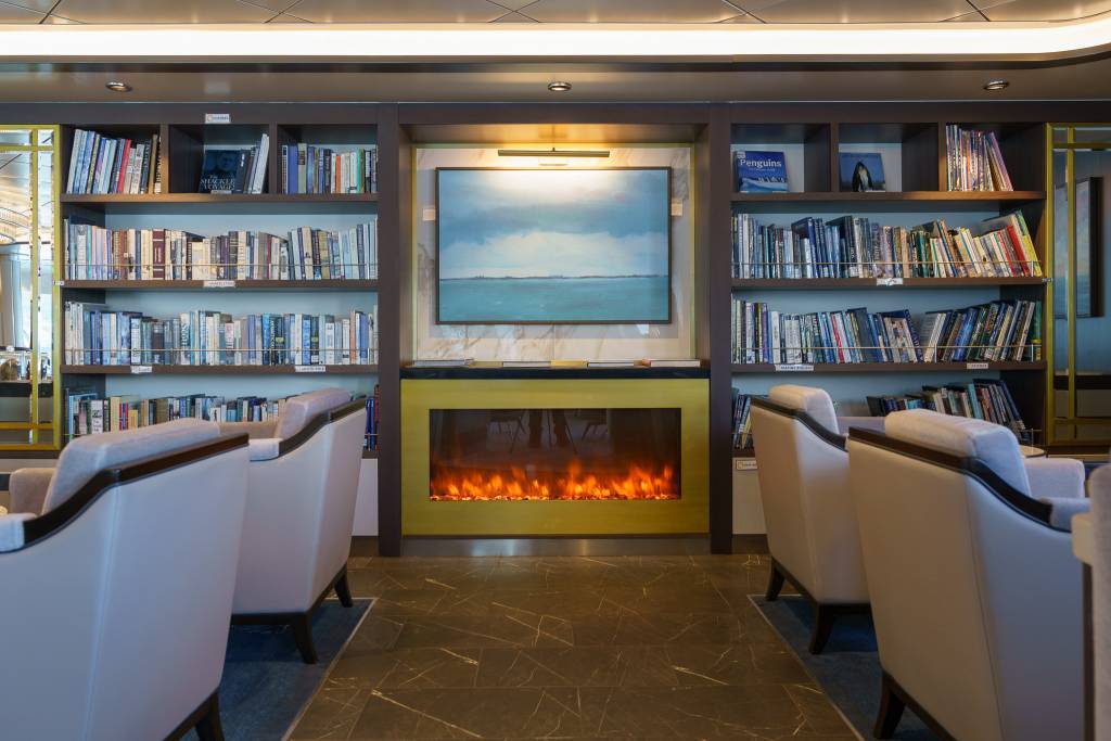 Ocean Explorer is modern, elegant and purpose-built for polar exploration. The 138-passenger vessel has been designed with the latest in expedition ship technology. One of the ship’s key features is the ULSTEIN X-BOW®, a marine engineering innovation that ensures a comfortable and smooth sailing experience thanks to the inverted bow. Located at the bow is the two-story, light-filled library, which introduces a welcome airiness to the expedition ship.