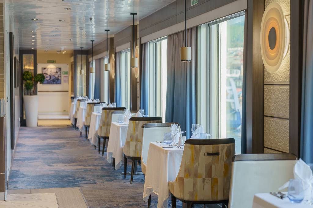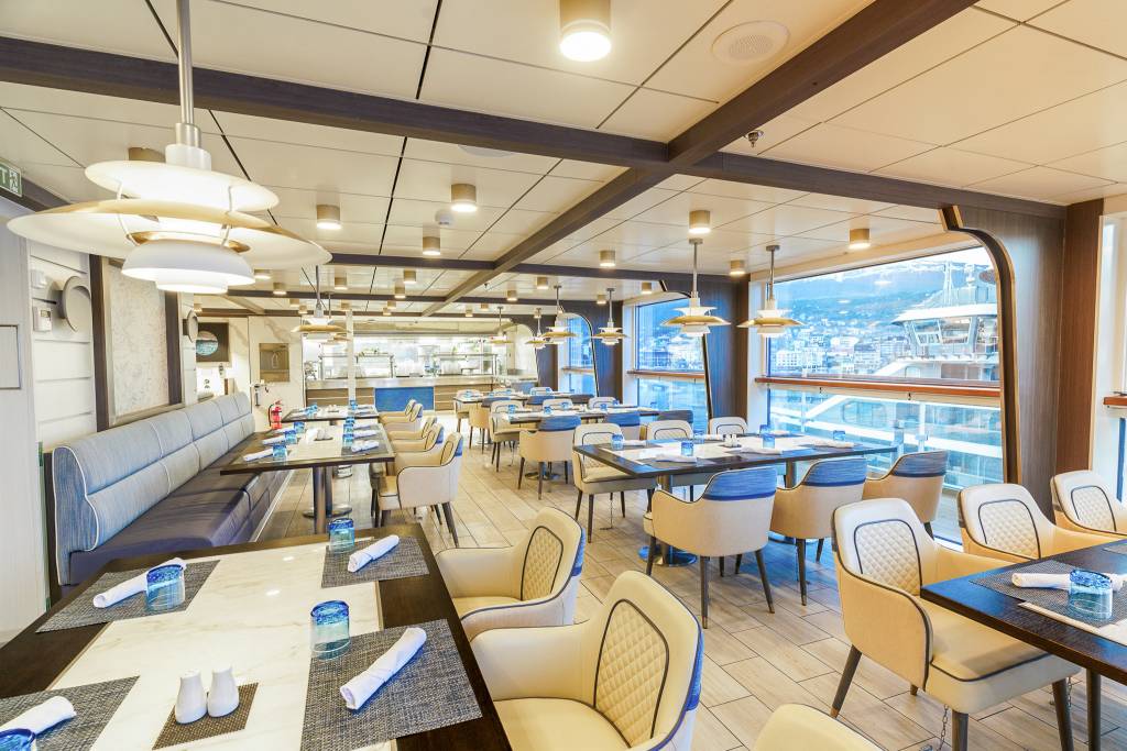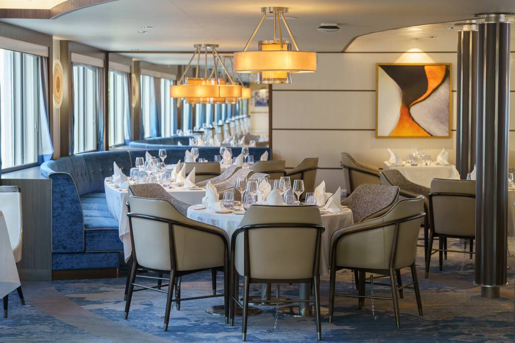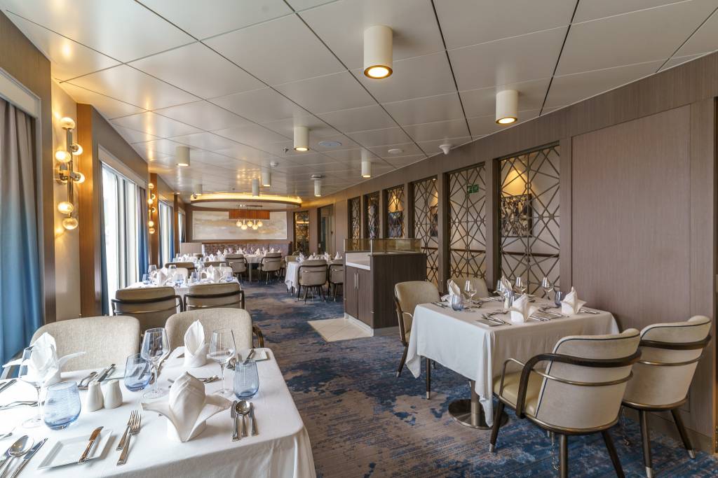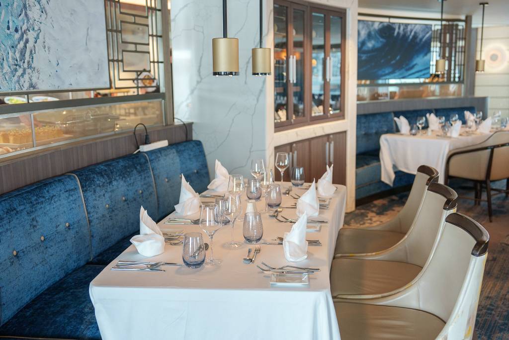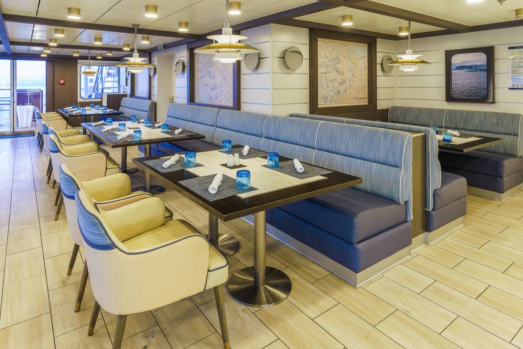 Ocean Explorer is modern, elegant and purpose-built for polar exploration. The 138-passenger vessel has been designed with the latest in expedition ship technology. One of the ship’s key features is the ULSTEIN X-BOW®, a marine engineering innovation that ensures a comfortable and smooth sailing experience thanks to the inverted bow. Located at the bow is the two-story, light-filled library, which introduces a welcome airiness to the expedition ship.