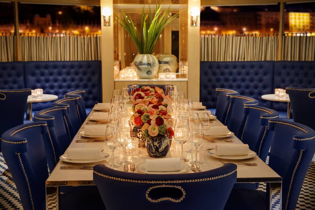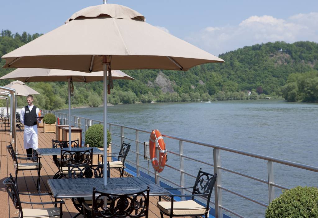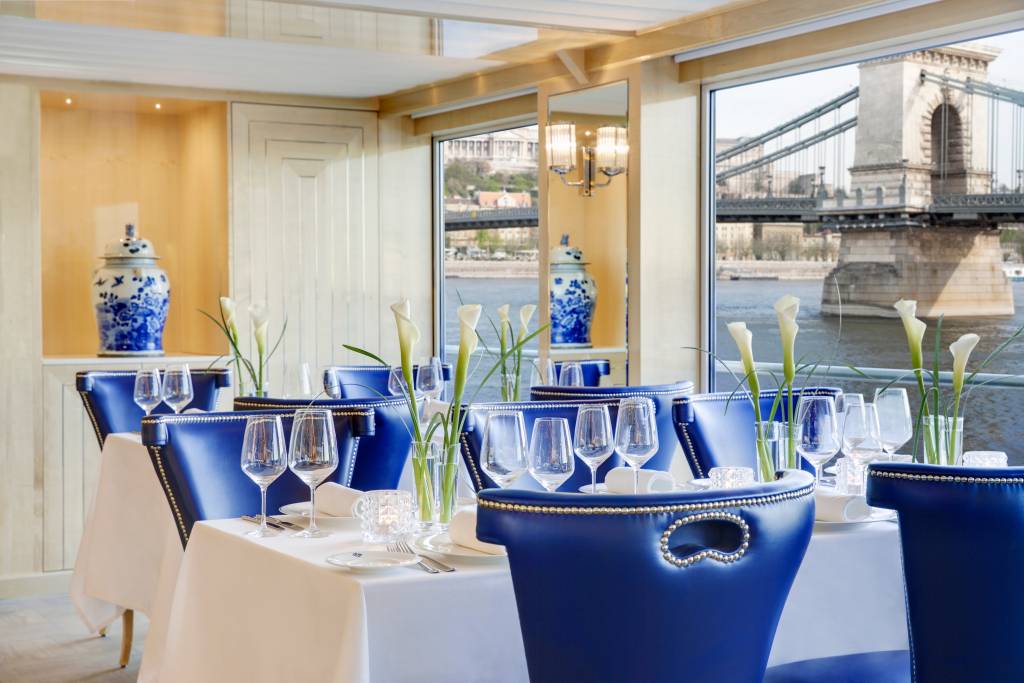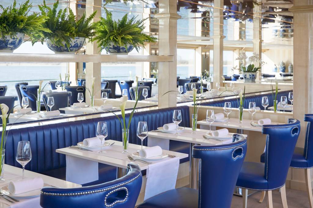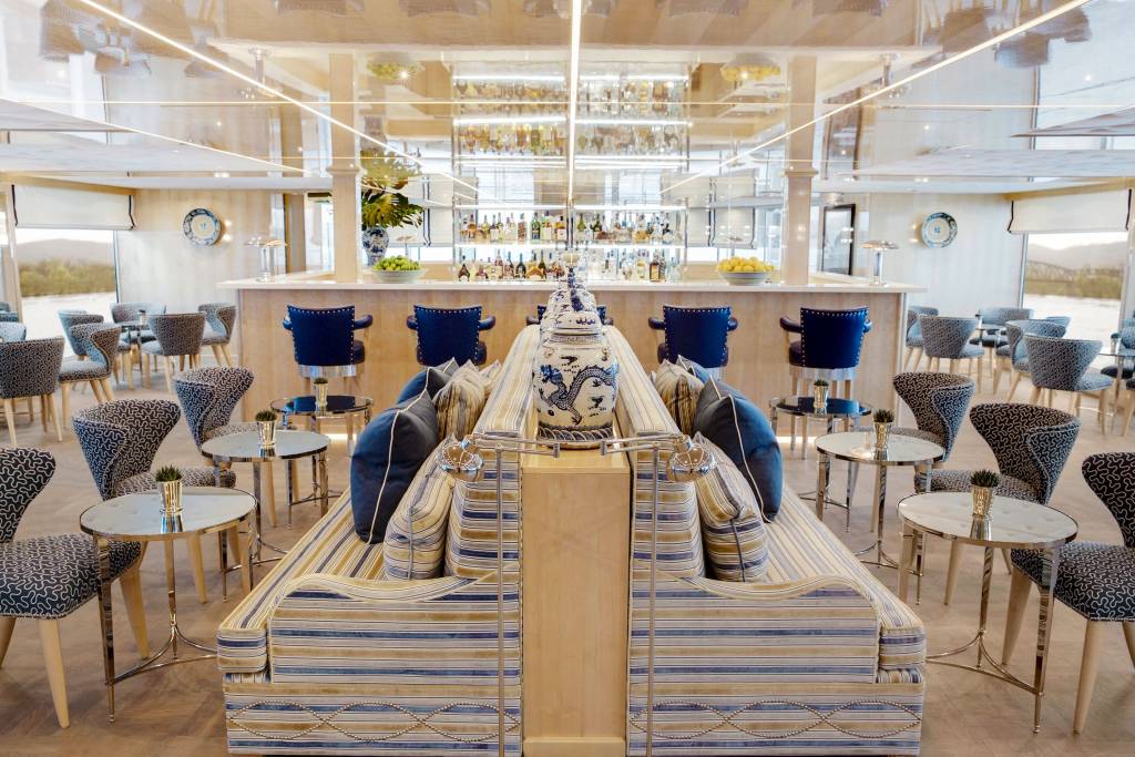 The S.S. Beatrice boasts yacht-style light wood with blue and white finishes throughout, a renovated lobby featuring elegant mirrors, marble floors, a white Murano chandelier with blue shades, and a grand staircase made of nickel and black iron—such eye-catching entrances are a signature design element of Uniworld’s Super ShipTM fleet. The ship’s redesigned lounge features sofas and chairs with hand-made upholstery, a parquet floor and upholstered ceiling panels, solar shades, and new USB ports allowing guests to charge anywhere they are sitting. The artwork throughout the ship includes pieces from Pablo Picasso, Alexander Calder, and Pino Signoretto.