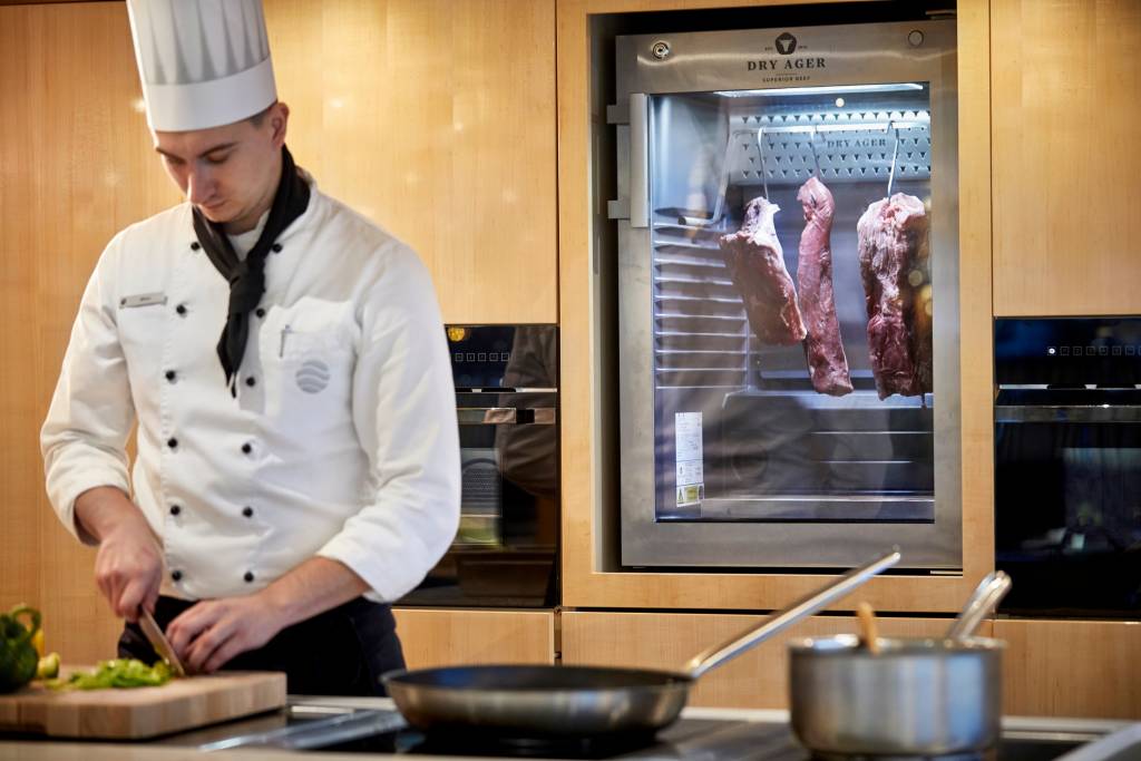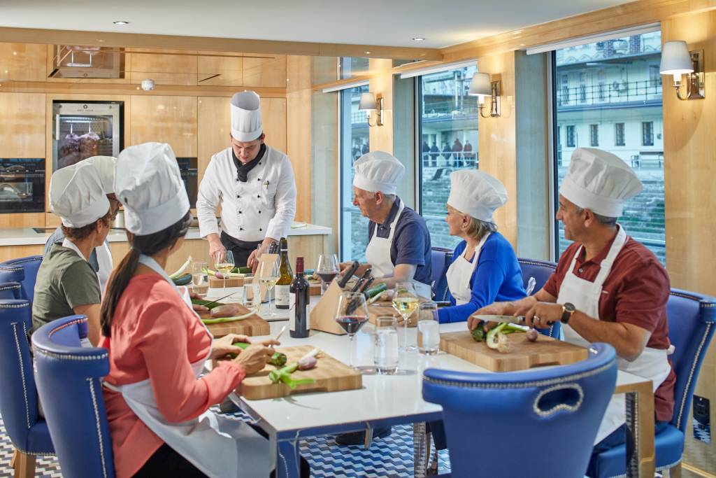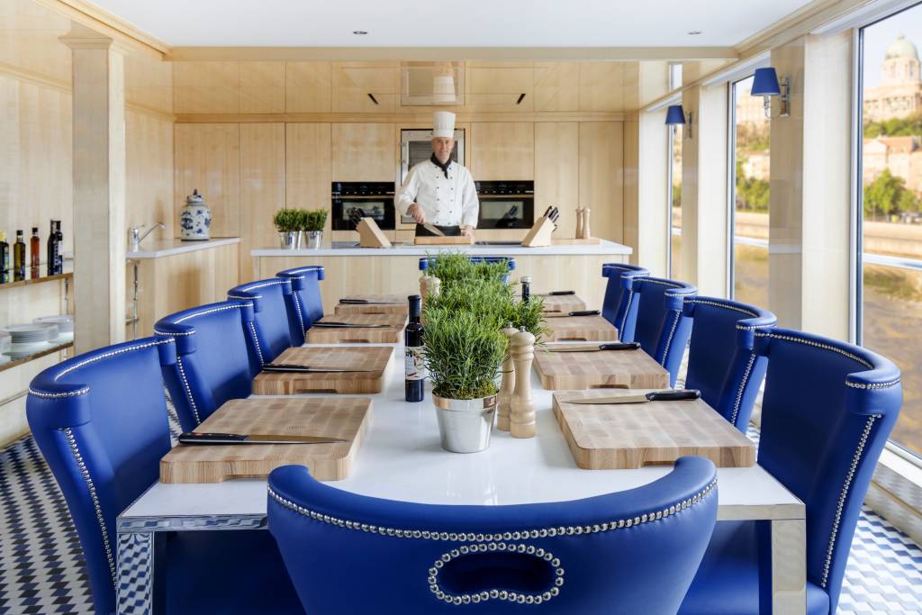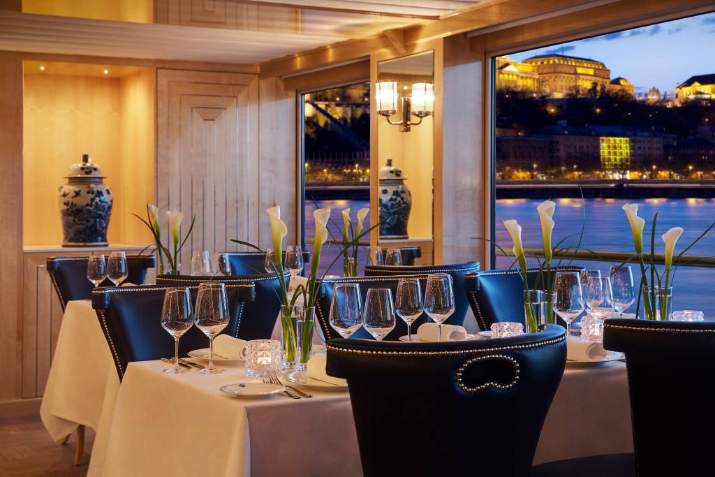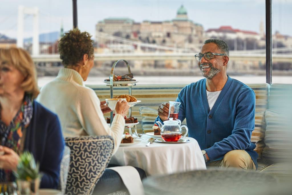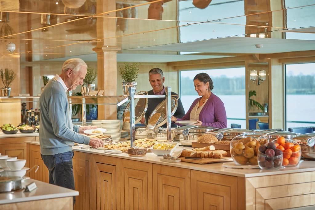 The S.S. Beatrice boasts yacht-style light wood with blue and white finishes throughout, a renovated lobby featuring elegant mirrors, marble floors, a white Murano chandelier with blue shades, and a grand staircase made of nickel and black iron—such eye-catching entrances are a signature design element of Uniworld’s Super ShipTM fleet. The ship’s redesigned lounge features sofas and chairs with hand-made upholstery, a parquet floor and upholstered ceiling panels, solar shades, and new USB ports allowing guests to charge anywhere they are sitting. The artwork throughout the ship includes pieces from Pablo Picasso, Alexander Calder, and Pino Signoretto.