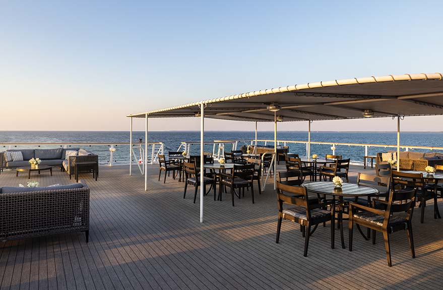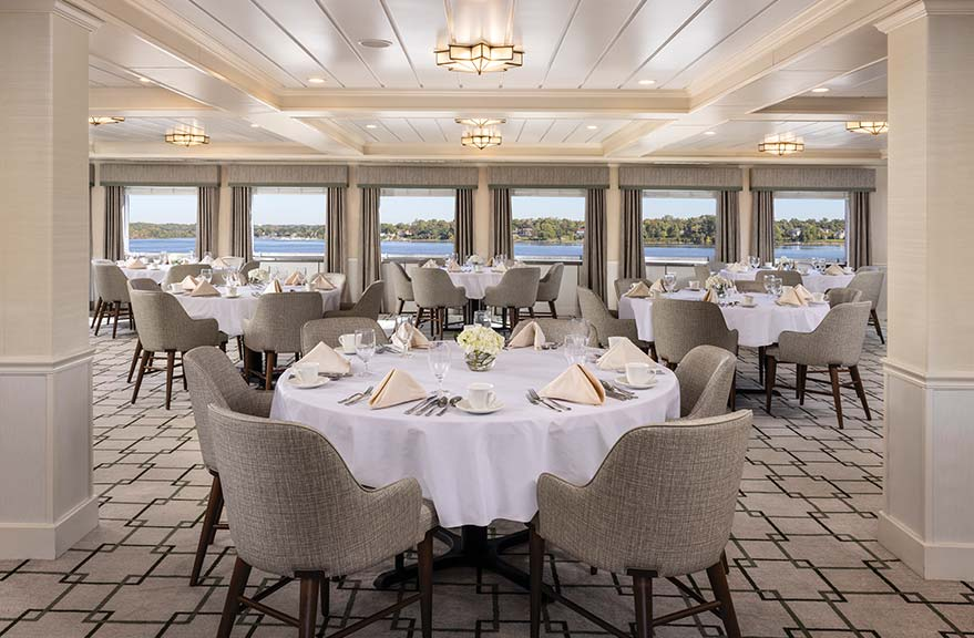 If you’re interested in getting some exercise, the fitness center is located on the 5th deck. There is also a putting green on the sun deck offering great views and plenty of lounge chairs in which to relax. The elegant restaurant on the Main Deck is a wonderful place to share the delicious cuisine of the region, after a day of exploration.