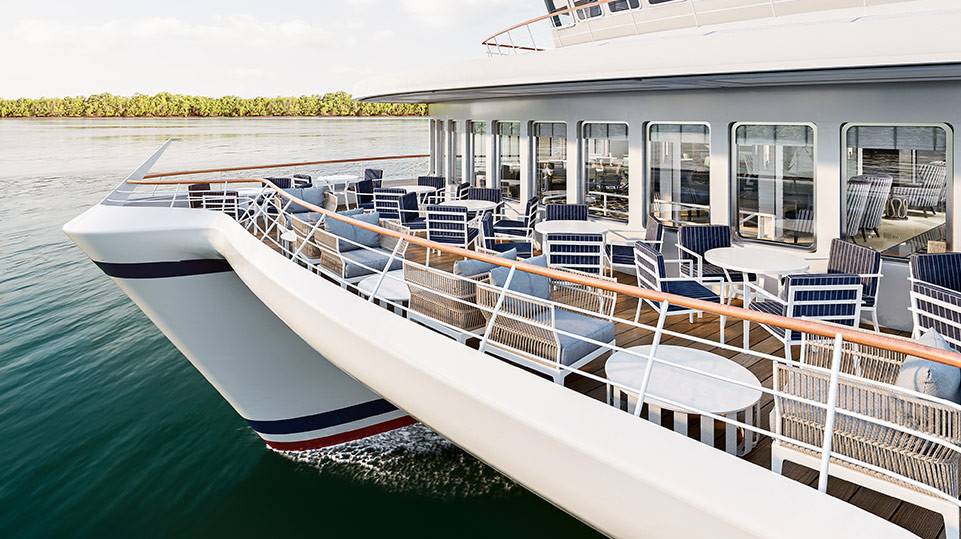 American Glory blends the best qualities of expedition adventure cruising with the refinement, luxury, stability, and land proximity of river cruising. Observation and sitting areas available at the bow, while a unique Swim/Activity Platform at the stern of the ship features a tender for local exploration. The shallow draft of the vessels allows rare access into small ports and ability to travel on almost any river or waterway.