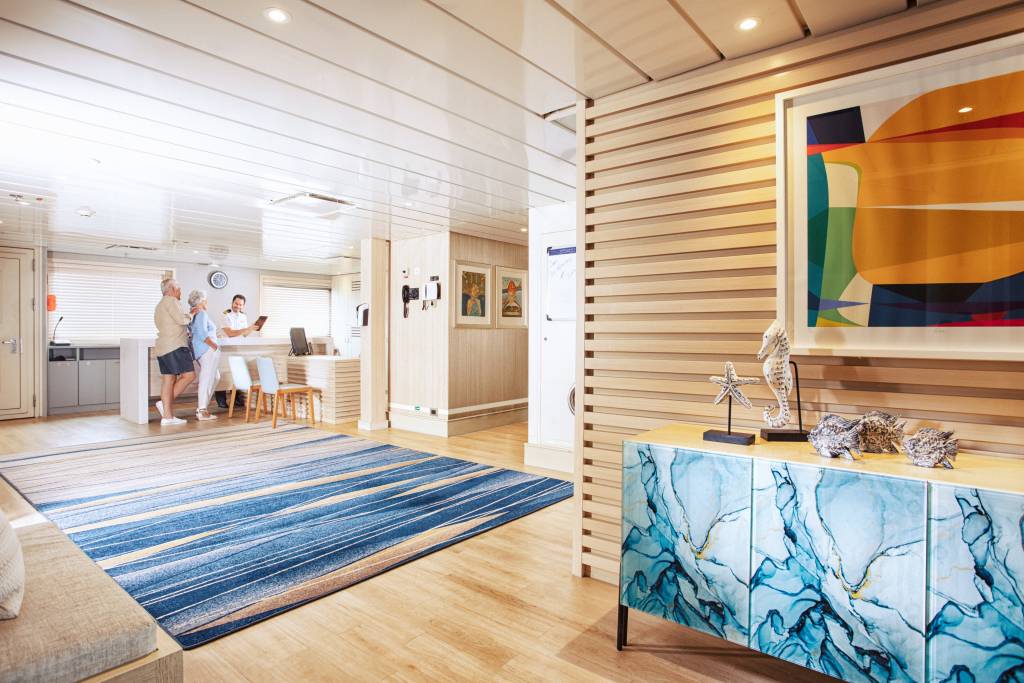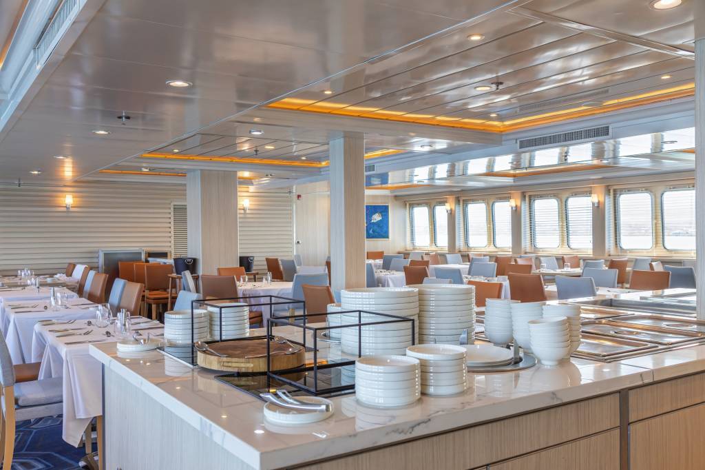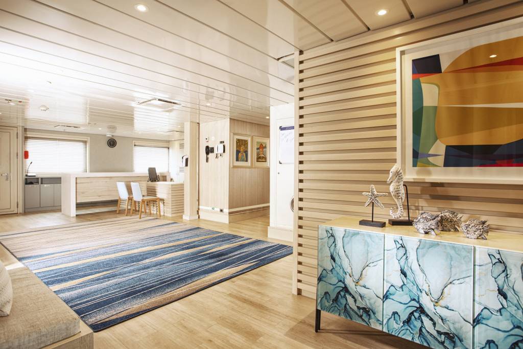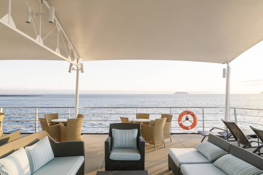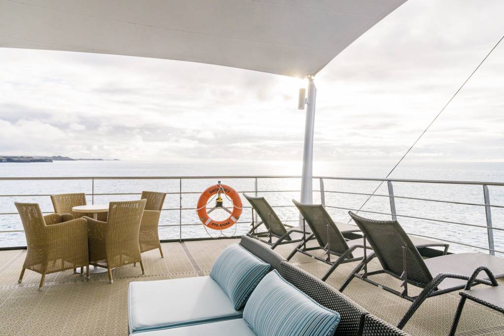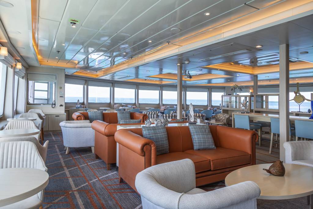 This sleek, spacious ship has a layout that allows you to enjoy your cruise from start to finish. Enjoy delicious food in the elegant restaurant, increase your knowledge of the Galápagos Islands with your fellow travellers in the Science Center or maybe mingle out on the multiple decks.