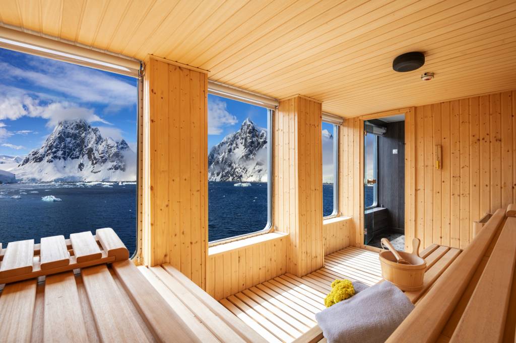 Wellness amenities, such as the spa, sauna, swimming pool, Jacuzzis and outdoor running track, allow guests to rejuvenate throughout their polar expedition. The beautifully designed restaurant and spacious lounges are ideal for guests to gather and engage in lively discussions about the day’s discoveries.