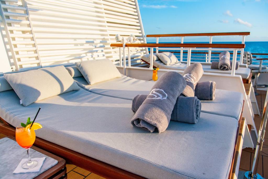 We welcome guests with the “SeaDream treatment” from the moment they come aboard. The yachting experience begins with a warm welcome from the captain with cocktails and hors d’oeuvres. The rest is up to you. Whether by day or night lounging on our signature Balinese Dream Beds, indulging in our Dream Cuisine, sipping a SeaDream cocktail at the back of the yacht, relaxing in the SeaDream Spa or being active with our Watersports Marina, this is your yacht, make it uniquely yours.