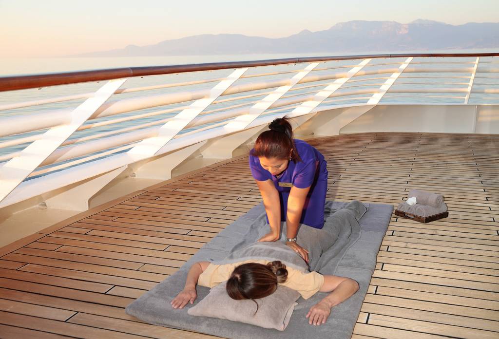 Certain Spa treatments and massages may be experienced privately outdoors on deck where you are cooled by gentle sea breezes.