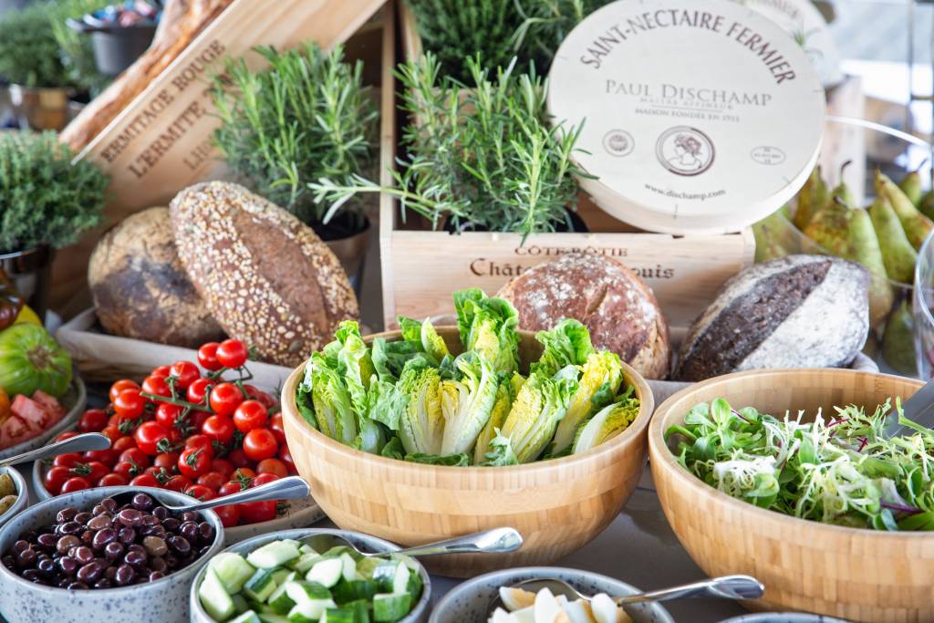 The stylish emerald tones found in the bar, Le Salon Champagne, are inspired by Yves Saint Laurent’s personal abode, Villa Majorelle. The quintessential La Brasserie, with its natural green and pops of yellow décor inspired by the famous Bouillon Pigalle, serves traditional bistro fare, while Le Grand Fromage offers menus reflective of the local cuisine, prepared from locally-sourced ingredients. La Cave des Vins is an intimate space where connoisseurs can gather for expert food and wine pairing dinners upon request.