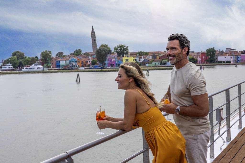 The River Countess underwent a complete design renovation in 2020, debuting as the S.S. La Venezia to bring guests an enhanced luxury experience inspired by Northern Italy. The redesign of the ship drew influence from the fine Fortuny fabrics displayed prominently onboard. Murano glass, gilded accents, and artistic etched elements pay homage to popular Venetian aesthetics of the early 20th century, creating an onboard atmosphere that is at once elegant and nostalgic.