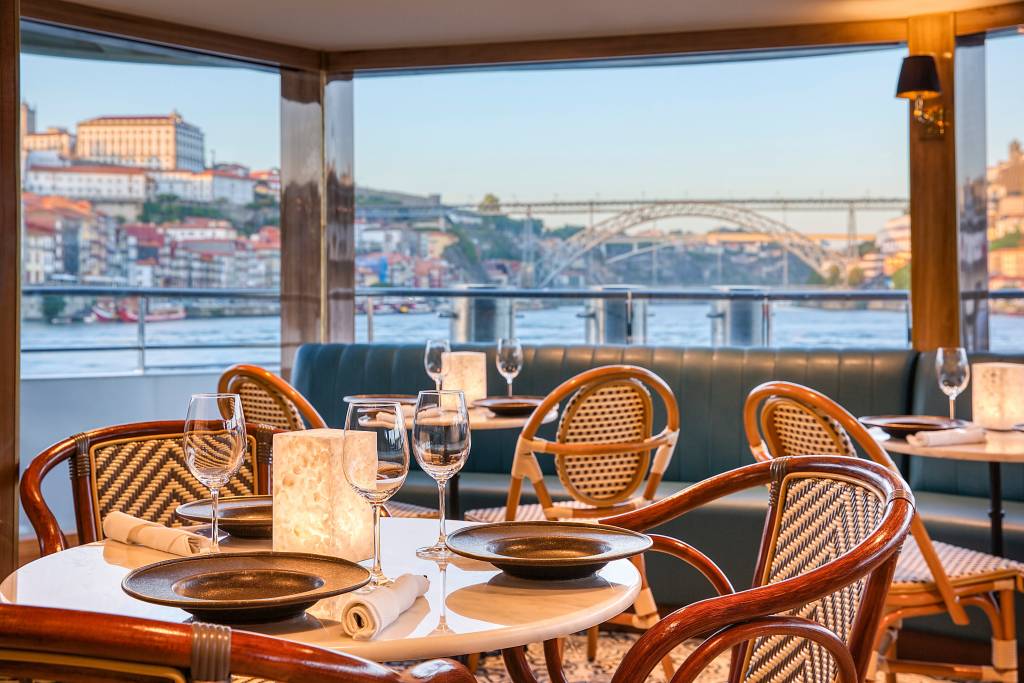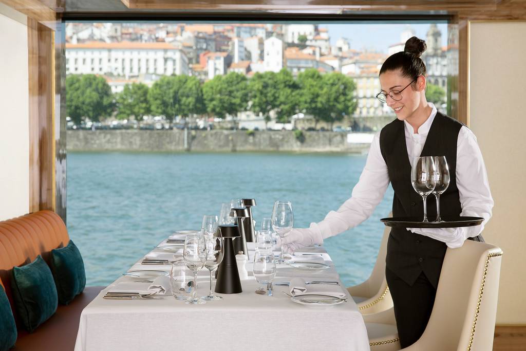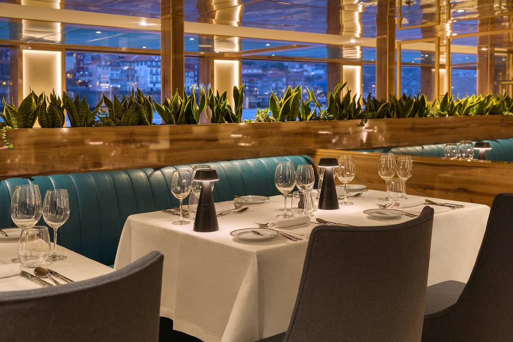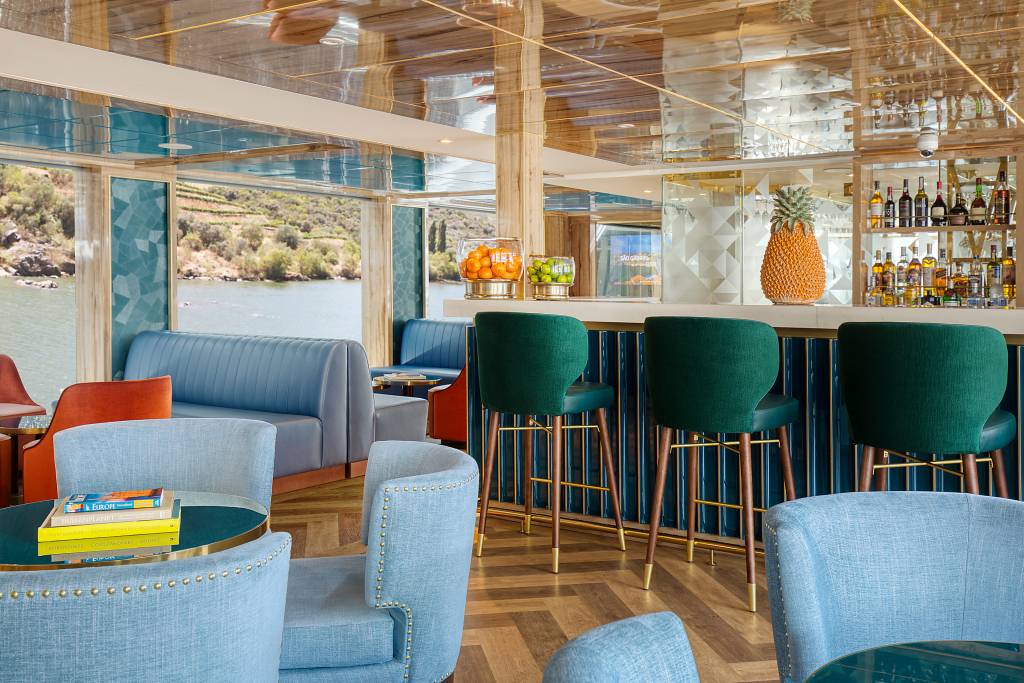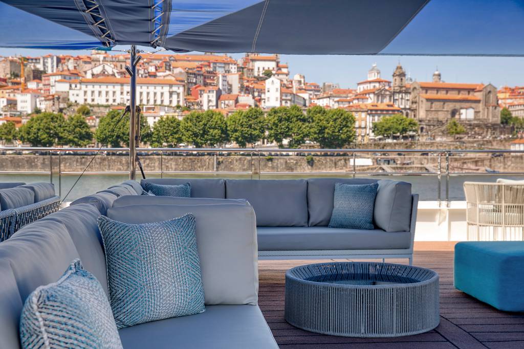 S.S. São Gabriel embodies the beautiful Douro River Valley like no other ship in the region. Beautiful azulejos tilework, polished wood, and a summery palette bring the vivacity of Portugal onboard, while a sundeck pool beckons passengers to relax in the sunshine while soaking in the natural beauty of the surrounding landscape. This Super ShipTM vessel offers an entire deck of lavishly appointed suites with butler service, as well as three different dining venues in which to experience the delectable wine and cuisine of the Douro River Valley.