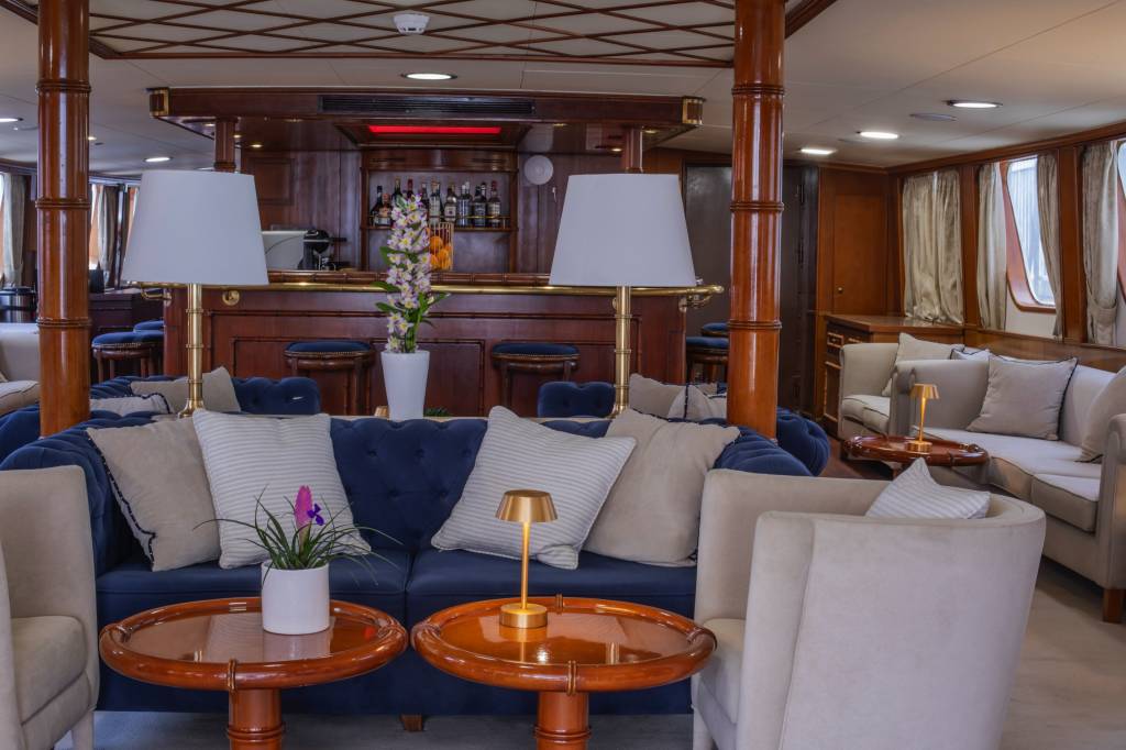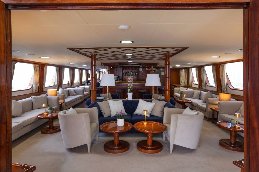 All cabins have private, nicely appointed bathrooms with showers. All cabins are air-conditioned and fitted with central music and with telephone for intra-ship communication. All ships have in lounges TV’s with satellite channels with at least English speaking channels. There are hairdryers in each cabin. Also, almost all of our ships have TV’s or flat-screen TV’s, safe boxes, mini-fridges, DVD players in cabins.