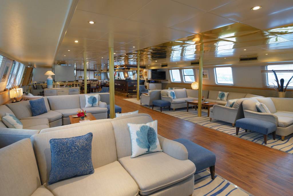 Imagine 147 feet of comfort, beauty, and safety classified by the latest International “Safety of Life at Sea” (SOLAS) standards. Imagine your floating home on board the sleek, classic double hulled Mega Yacht that sails the seas under the name PEGASOS, waving her flag through the wind. Discover the world by sea at 10 knots per hour, in her un-rushed pace, one island or seashore at a time. Pegasos loves to seduce her select 44 guests with her simple lines and comfortable lounges redefining what yachting was meant to be. A spacious lounge with ample space, dining areas decorated with warm colors, large windows offering pristine views of all destinations, shaded areas and outdoor bar and loungers are just some of the elements that define her essence. 360° views of unobstructed ocean are your eyes’ canvas painted with ocean blue and deep green mountains. Mingle with likeminded travelers in our public areas, enjoy a moment to yourself in our ample deck space, or retreat to one of our 21 ocean view cabin sanctuaries all offering windows connecting you with Mother Nature’s wonders.