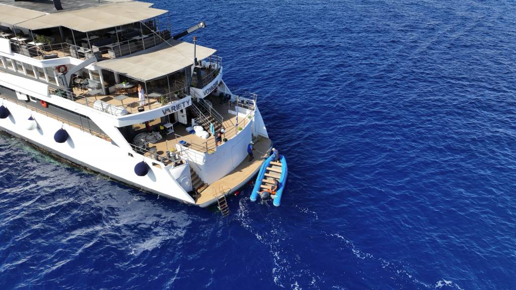 Imagine 223 feet of comfort, beauty, and safety classified by the latest International “Safety of Life at Sea” (SOLAS) standards. Imagine your floating home on board the sleek, contemporary state of the art Mega Yacht that sails the seas under the name VARIETY VOYAGER, waving her flag through the wind. Discover the world by sea at 13 knots per hour, in her un-rushed pace, one island or seashore at a time. Variety Voyager loves to seduce her select 72 guests with her sleek lines and ample deck space redefining what yachting was meant to be. Warm fabrics, rich marbles, ax minster carpeting, and soft tones wood-paneling are just some of the elements that define her essence. 360º views of unobstructed ocean are your eyes’ canvas painted with ocean blue and deep green mountains. Mingle with like-minded travelers in our public areas, enjoy a moment to yourself in our ample deck space, or retreat to your cabin sanctuary all offering windows or portholes connecting you with Mother Nature’s wonders.
