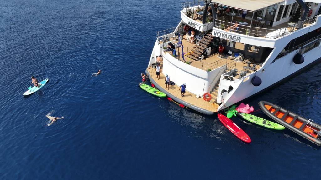 On board there are kayaks, snorkelling equipment and a swimming platform. Beach towels are provided.